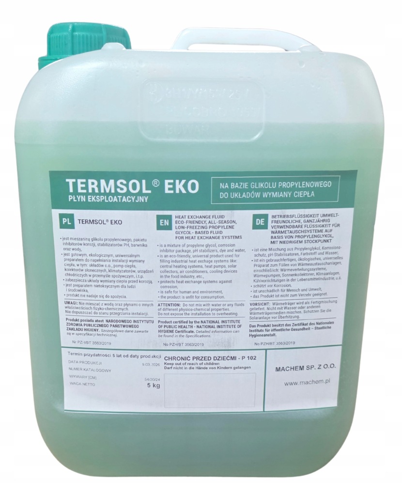 Szukasz niezawodnego, bezpiecznego i gotowego do użycia rozwiązania dla swojej instalacji? TERMSOL EKO -35°C to profesjonalny, ekologiczny płyn niezamarzający, stworzony na bazie nietoksycznego glikolu propylenowego.