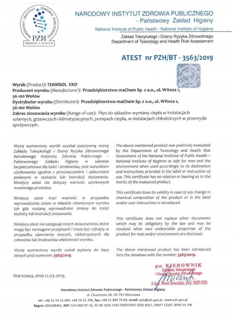 - WYBÓR LIDERÓW BRANŻY: Nasze płyny TERMSOL EKO spełniają najbardziej rygorystyczne normy jakościowe. To właśnie dlatego produkujemy je dla czołowych marek z branży grzewczej i solarnej, w tym m.in. dla renomowanej firmy HEWALEX. Wybierając nasz produkt, stawiasz na sprawdzone rozwiązania, którym ufają najwięksi producenci.