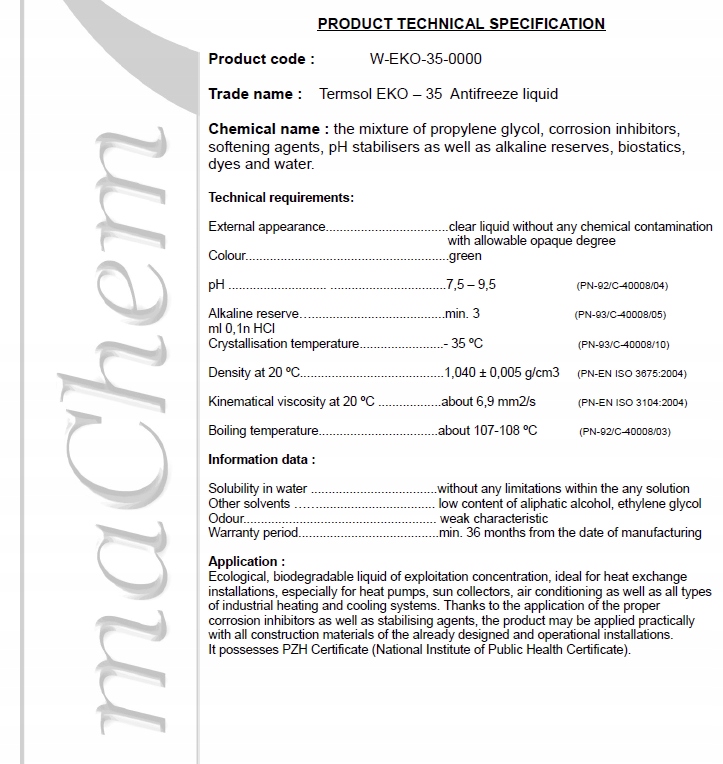 - Pochodzenie: Wyprodukowano w Polsce przez firmę maChem.