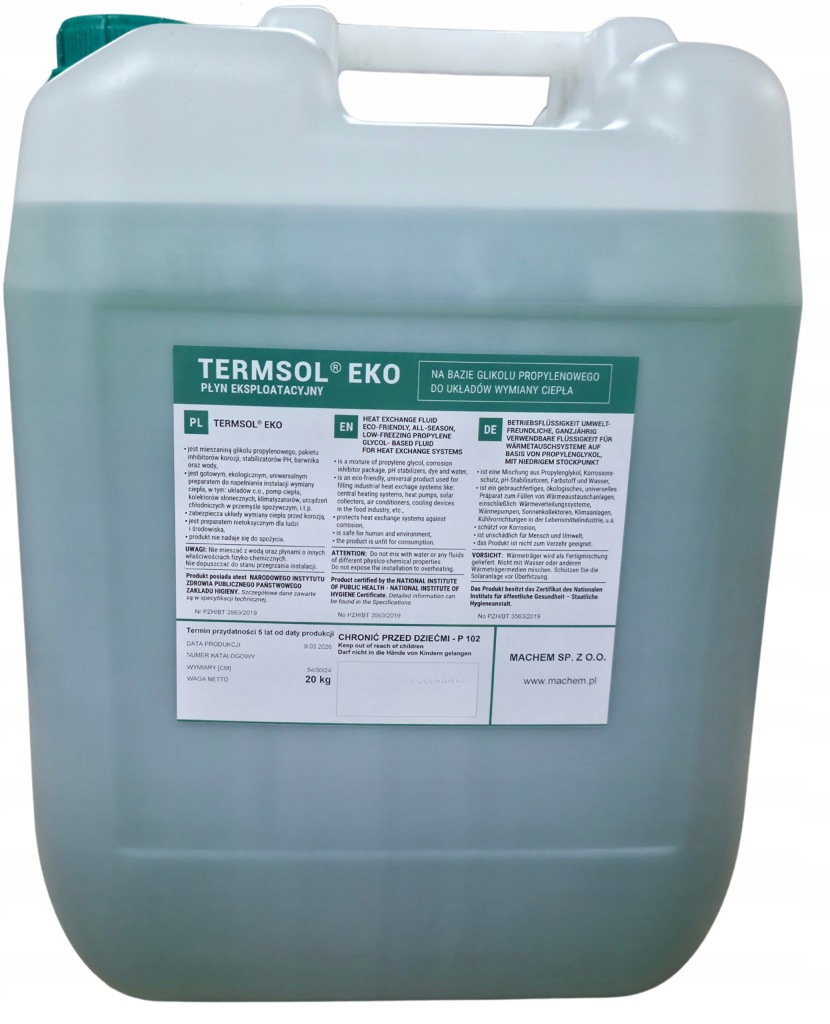 TERMSOL EKO -30°C Gotowy Płyn Solarny i do CO | Glikol Propylenowy | Ekonomiczne 20 Litrów
